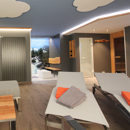 Wellness pur mit Finnischer Sauna, Dampfbad, Fussbad und Erlebnis-dusche. Gemütliche Ecklounge und verstellbare Liegen. Cardio Sport-geräte. Dachterrasse mit Whirlpool und viel Sonne - eine wahre Freude.